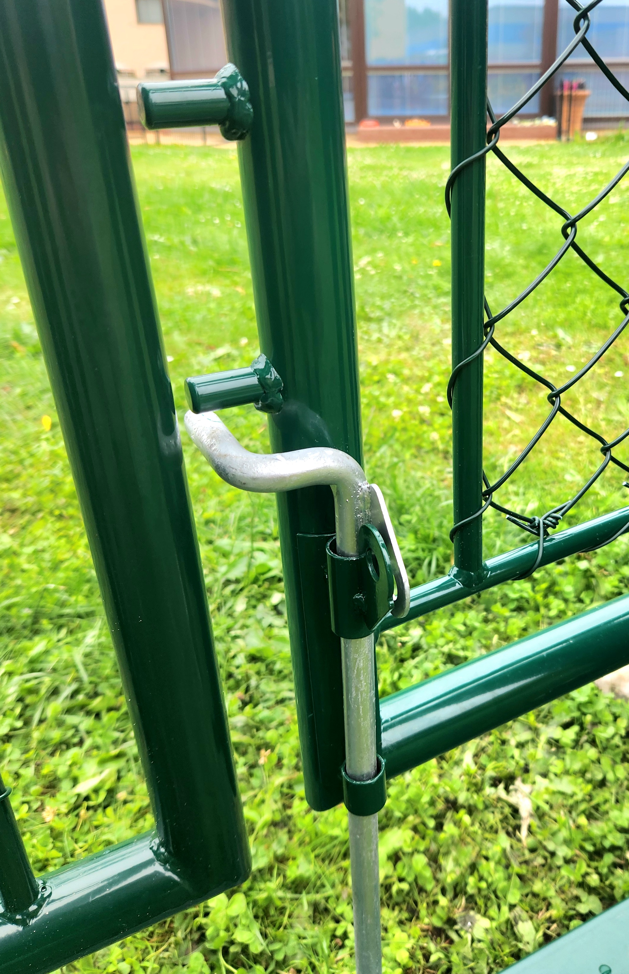 * Křídla bran: - venkovní rámy obou křídel jsou svařeny ze zinkované trubky 38mmm, následně do těchto rámů je vevařen další trubkový rámeček z trubky 14mm a do pravého křídla i kapsa na zamykací mechanismus a do levého zástrč. Následně jsou celé rámy kvalitně poplastován polyesterovým poplastováním na barvu RAL 6005 - jedlová zeleň. Poté je vnitřní rám křídel vypleten a obšit 4-hr. klasickým pletivem EXTRA z pevného drátu 2,7mm.