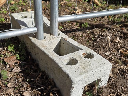 Die Maße des Betonsockels betragen 70 x 20 x 14 cm. Gewicht 28 kg, Lochgröße 42 mm . Der Vorteil des Betonsockels ist Robustheit, Stabilität, im Sockel befinden sich geschickt platzierte Taschen, die zur einfachen Befestigung bei der Handhabung und Montage von Betonsockeln dienen . Es sind auch Kunststofffüße auf dem Markt erhältlich, wir bieten diese jedoch aufgrund geringer Stabilität und teilweiser Verfremdung auf Baustellen nicht an.