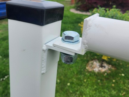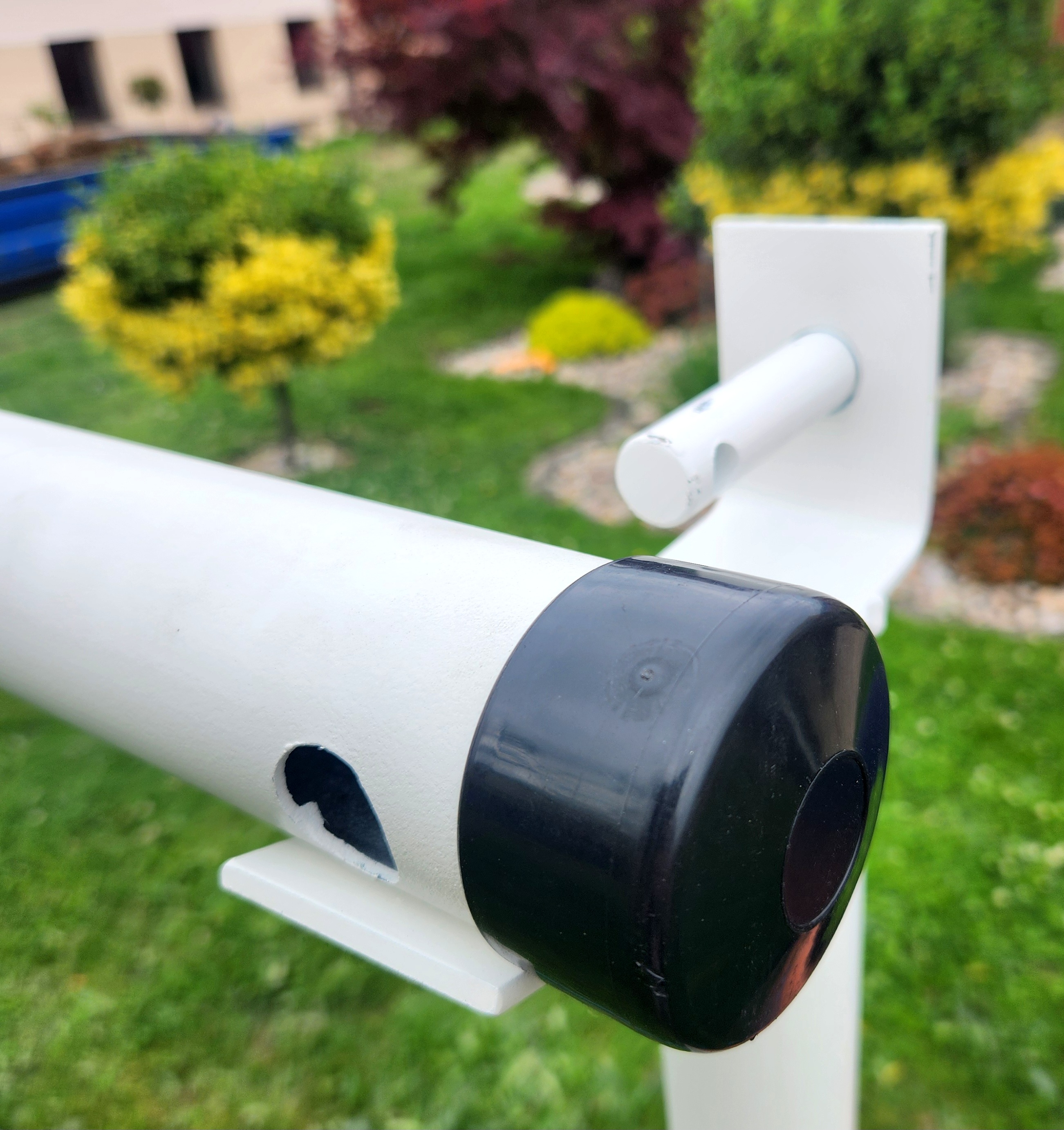 Die Barriere wird in einer Höhe des horizontalen Balkens von ca. 90–110 cm installiert (Betonieren Sie die Stützbeine und die Stützsäule entsprechend der erforderlichen Balkenhöhe). Für eine ordnungsgemäße Funktion der Barriere betonieren Sie alle drei Beine in eine Betonkugel mit einer Gefriertiefe von 80–90 cm (die Stützsäule muss sich jedoch nicht am Boden der Grube befinden). Durchmesser und Größe des Betonfundaments hängen von der Festigkeit, Dichte und Stabilität des Untergrunds sowie von Ihren Festigkeitsanforderungen ab. Die Barriere wird mit einem Vorhängeschloss verschlossen. (Nicht im Lieferumfang enthalten).