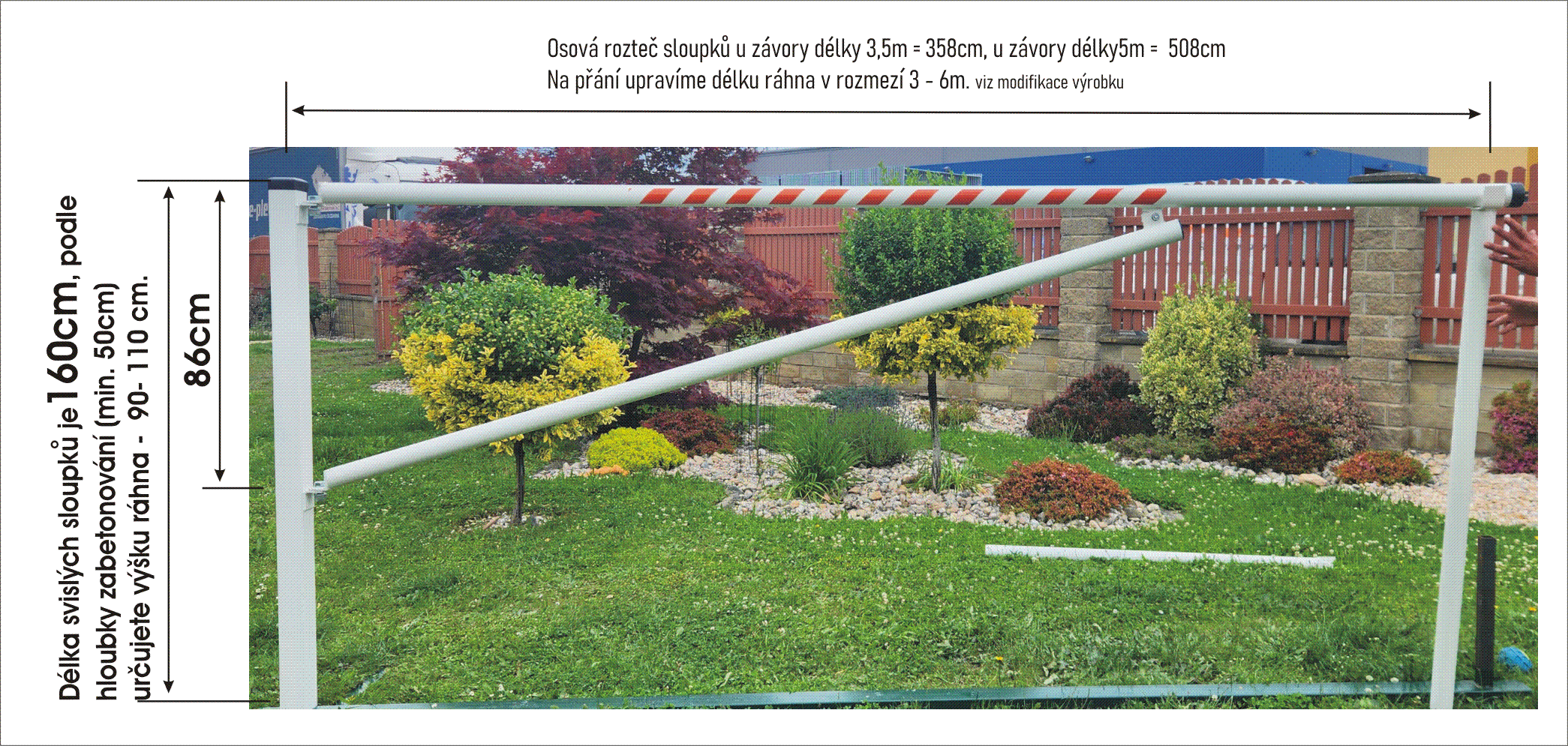 Die Länge des Forstschrankenbaums beträgt 3,5 m. Er wird inklusive zwei Stützbeinen zur Gewährleistung der Stabilität im geschlossenen und offenen Zustand sowie einer Stützsäule und Verbindungsmaterial geliefert. Die Länge der Schranke kann bei Bedarf gekürzt werden (wählen Sie dies in der Produktmodifikation aus und schreiben Sie die Länge des Baums in die Bestellhinweise). Wir rufen Sie vor der Produktion an und besprechen die Details.
