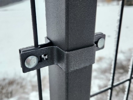 Die durchgehende Hülse 60 x 40 mm im Farbton Atrazit dient zur geraden Befestigung von Paneelen an Pfosten mit einem Profil von 60 x 40 mm . Es löst die Befestigung eines Zauns aus 3D-Paneelen oder 2D-Paneelen an Pfosten 200cm/60x40mm oder 250cm/60x40mm oder 300cm/60x40mm, d.h. Befestigung der Paneele von beiden Seiten des Pfostens. Es besteht aus feuerverzinktem Stahl. Die Fassung enthält alle notwendigen Komponenten - verzinkte Torschrauben mit Linsenkopf, Muttern, Distanzscheiben aus Kunststoff.