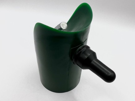 Separate Kunststoffkappe zur schrägen Befestigung eines 48-mm-Pfostens an einem 40-80-mm-Rohr.