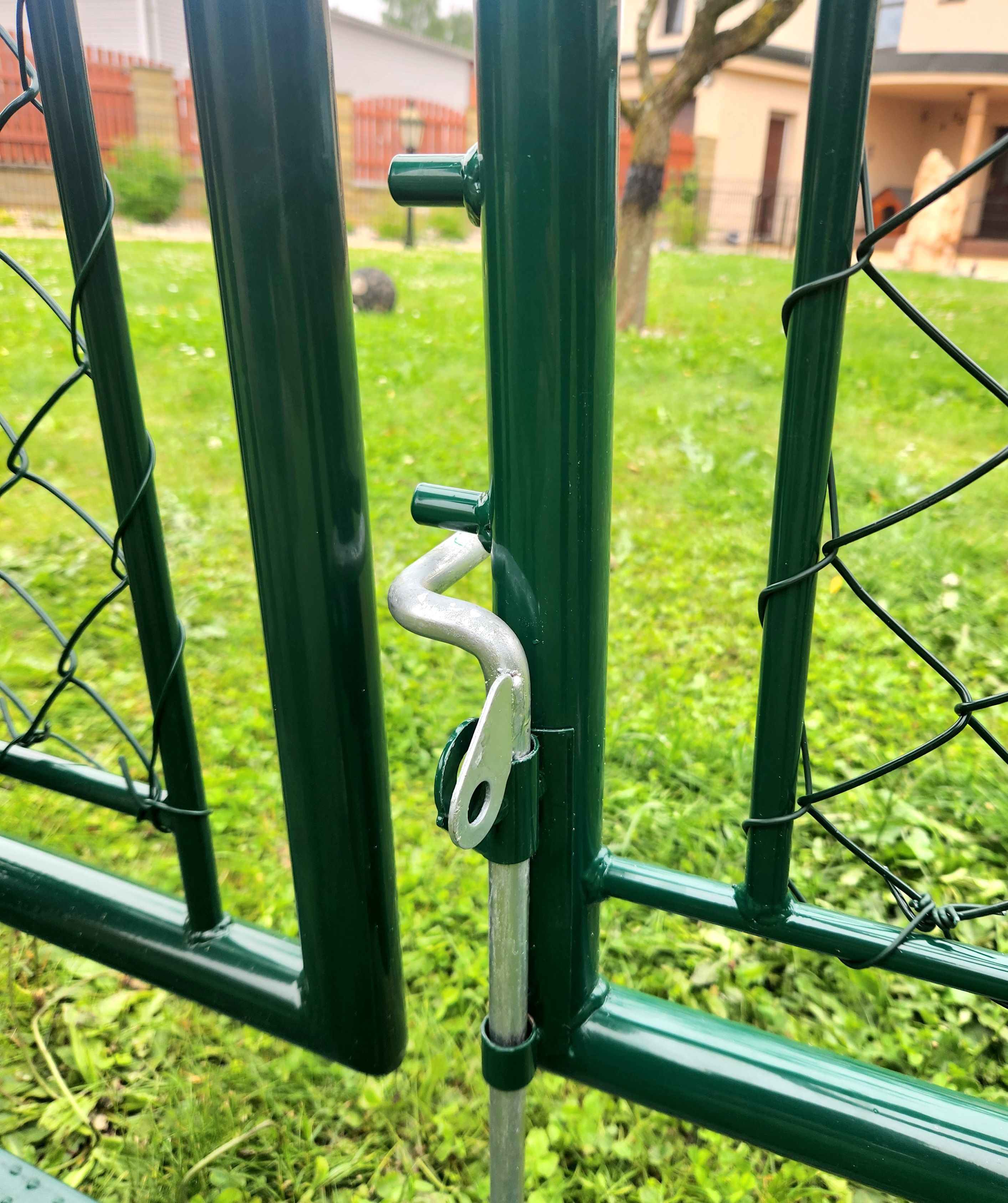 Asymmetrisches zweiflügeliges Tor , Höhe 200 cm, Flügelbreite 100 cm (Tor) + 180 cm (Torflügel), kunststoffbeschichtet, mit Griffverschluss und abschließbar mit einem klassischen Schlüssel , mit vierseitigem (klassischem) Maschengewebe. Die Durchgangsbreite beträgt 280 cm, die Gesamtbreite des Tores inklusive Pfosten ca. 296 cm. Nur unser Unternehmen bietet Tore mit Pfosten mit einem Durchmesser von 60 mm und einer Wandstärke von 2,5 mm (die Konkurrenz bietet nur 1,5 mm an, die viel schneller verrotten) sowie eine Ganzmetalltasche mit einem hochwertigen Tiefeinsteckschloss.