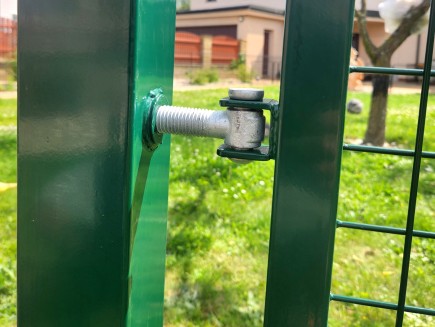* Torzubehör: obere und untere verstellbare Scharniere an jedem Flügel , mit denen Sie einfach die genaue Position des Torflügels einstellen können, ein Toranschlag , mit dem Sie bestimmen, ob sich das Tor zum Grundstück oder zur Straße öffnet, sämtliche Beschläge , ein Griff und ein zylindrisches, konisches Schloss, das in den Flügelrahmen eingesetzt ist. Das Tor hat eine universelle Ausführung für die Verwendung auf der rechten und linken Seite . Mit dem Toranschlag zwischen den Flügeln können Sie die Öffnungsrichtung zueinander oder voneinander weg einstellen. Das Tor ist mit einem ausgeklügelten Erdungsstecker ausgestattet, dessen Konstruktion es nicht zulässt, dass der Stecker angehoben wird, wenn das Tor verriegelt ist . Der Stecker ist universell für rechte und linke Flügel.