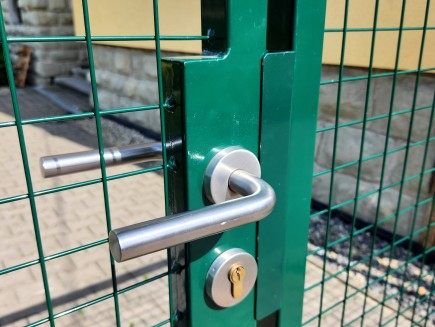 * Torrahmen – die Rahmen bestehen aus einem sehr starken Vierkantprofil 40 x 40 mm mit einer Wandstärke von 1,5 mm um den gesamten Umfang des Rahmens, einschließlich einer Blechtasche für ein breites Einsteckschloss des tschechischen Herstellers HOBES . Die genaue Höhe der Rahmen muss bei dieser Ausführung entsprechend der Höhe des Paneels angepasst werden, das wir an den Rahmen montieren. In den von der Straße aus gesehen rechten oder linken Rahmen (bei der Bestellung auswählen) schweißen wir eine geschlossene Stahltasche 80 x 40 mm ein, die den Einsteckschlossmechanismus, den Edelstahlgriff und den Zylindereinsatz enthält (nicht im Produkt enthalten). Montieren Sie am zweiten Flügel einen Erdungsstecker „rýgl, šuipák“ (im Lieferumfang enthalten).