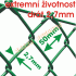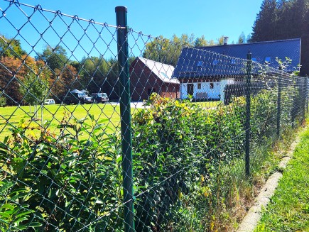 Die Maschenweite beträgt 180 cm . Das Gitter ist ohne geflochtenen Spanndraht (die Vorteile dieser Konstruktion finden Sie in der detaillierten Produktbeschreibung oder der Montageanleitung ). Der Drahtdurchmesser inklusive Kunststoffbeschichtung beträgt 2,7 mm . Das Gitter besteht aus massivem, feuerverzinktem Stahldraht nach ČSN 426410 mit einem Durchmesser von 1,7 mm . Nach der Feuerverzinkung wird der Draht mit extrudiertem Kunststoff beschichtet. Die Maschenweite beträgt 50 mm . Die Farbe des Gitters ist Dunkelgrün (RAL 6005).