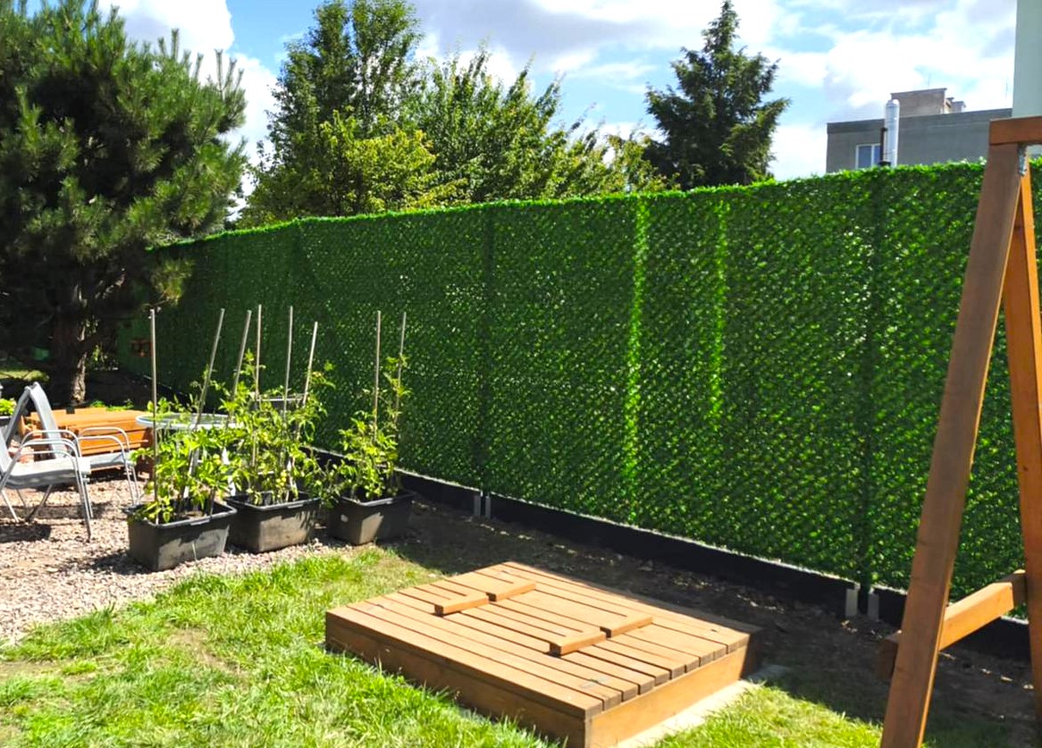 Dieses Produkt ist 100 % UV-beständig. Wir liefern es in 10-m-Rollen und in Höhen von 100 cm, 120 cm, 150 cm, 180 cm und 200 cm. Dekorative Graszäune in Grünoptik eignen sich für den ganzjährigen Einsatz im Innen- und Außenbereich. Das Produkt ist feuerfest sowie frost- und schneebeständig.