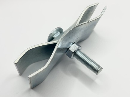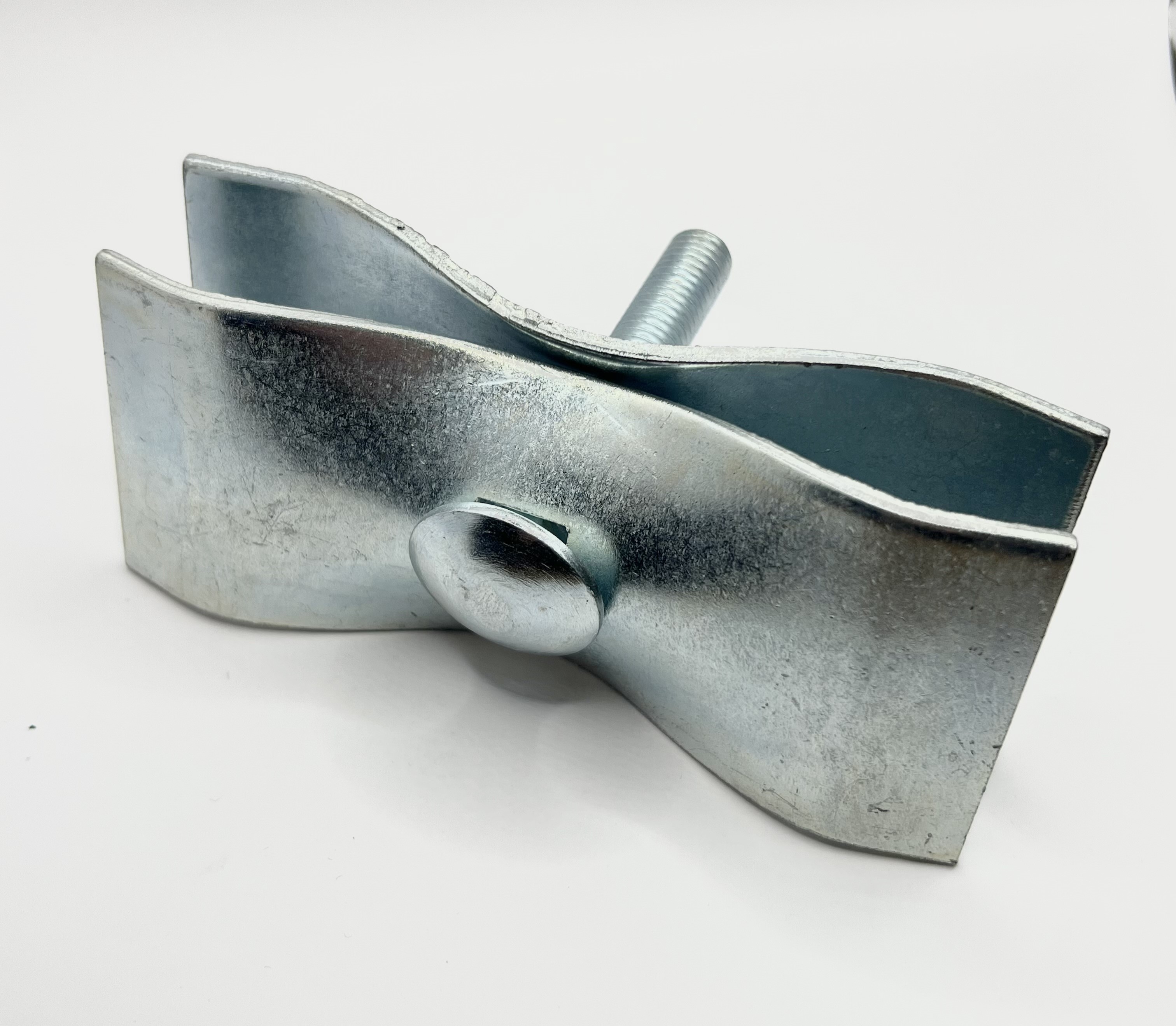 Koppler zum Anschluss mobiler Panels. Es dient als hochwertiges Zubehör zur Montage mobiler Panels. Die normale Befestigung (Verbindung) der Paneele wird mit einer Drahtöse gelöst, die Bestandteil des Mobiles ist. Tafeln. Für einige Anwendungen, bei denen eine größere Festigkeit der Verbindung erforderlich ist und es unmöglich ist, das Paneel aus der Öse zu lösen, kann diese Kupplung verwendet werden. Aus Starkblech, feuerverzinkt, inkl. Schraube und Mutter. Prod. Code M00004