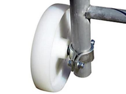 Das Nylonrad dient zur Montage am vertikalen Rohr des mobilen Paneels, wenn das Paneel als Eingangstor verwendet wird.