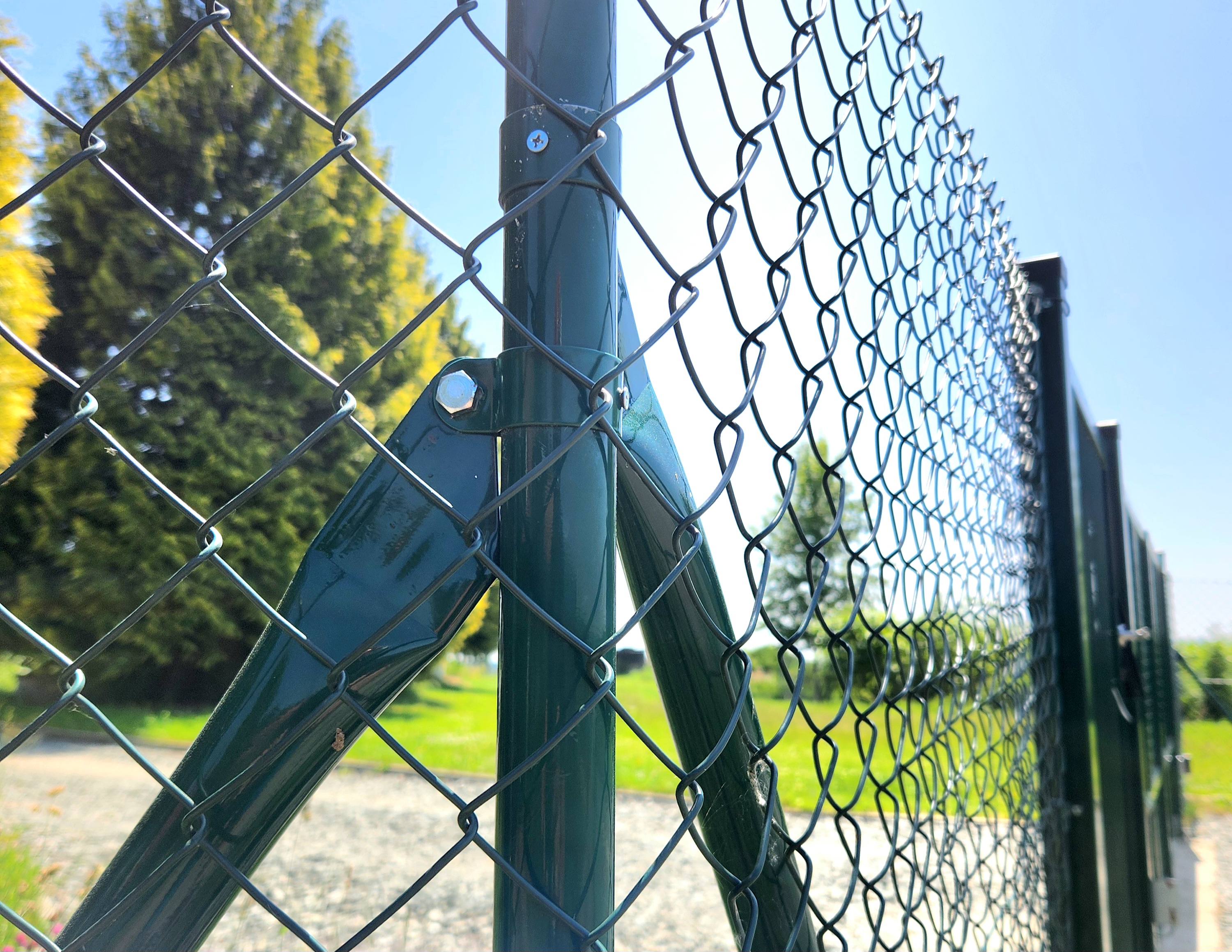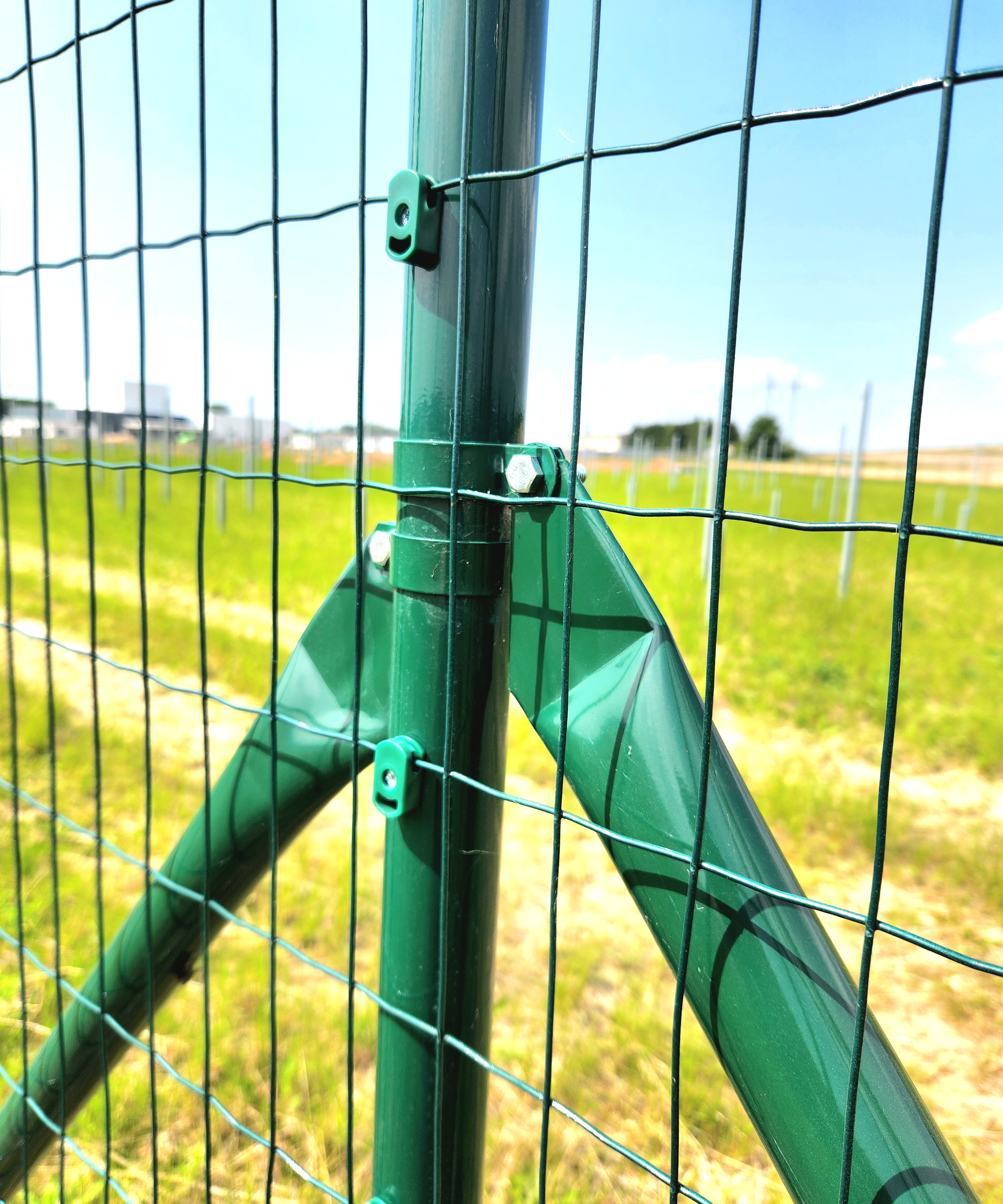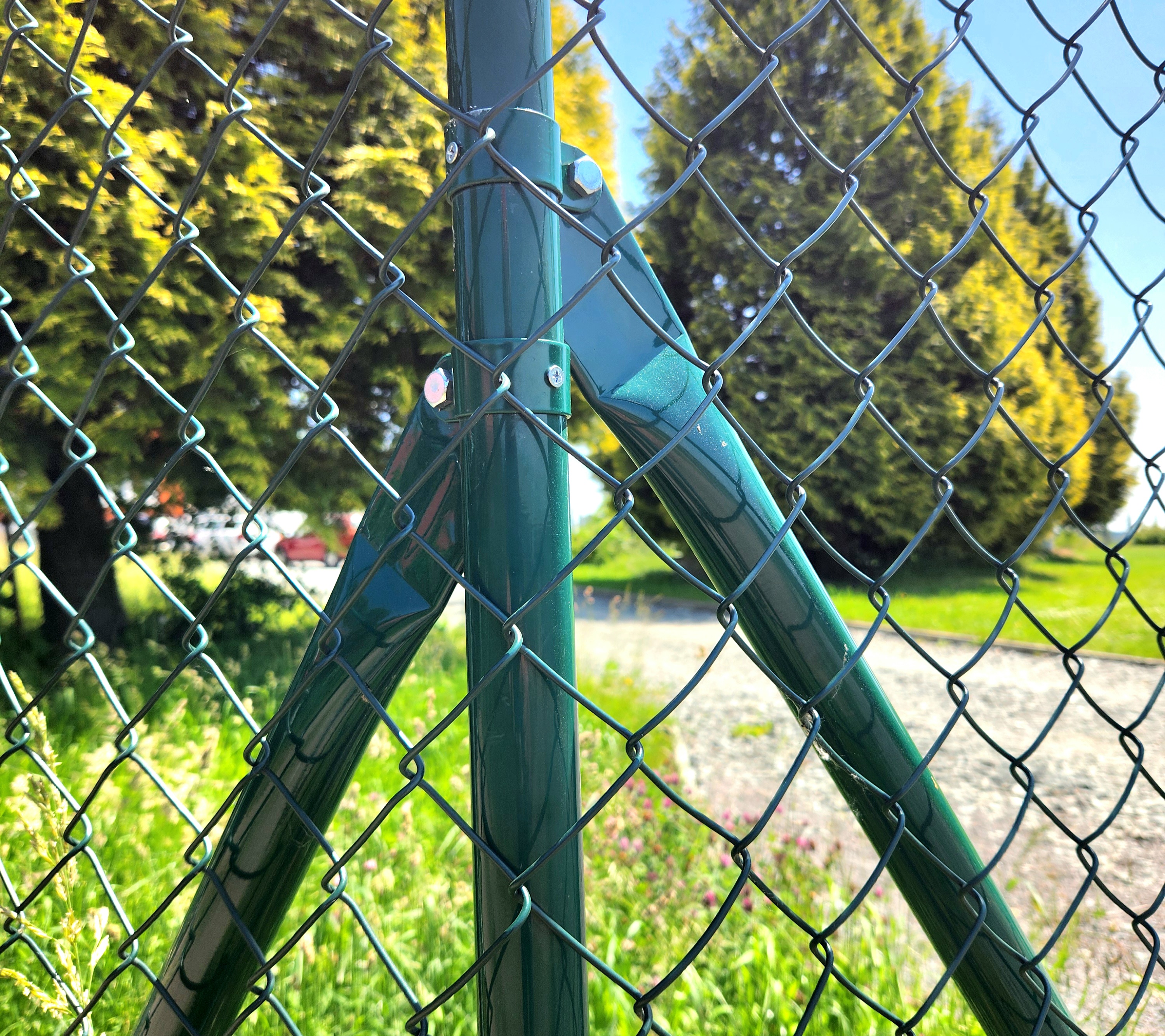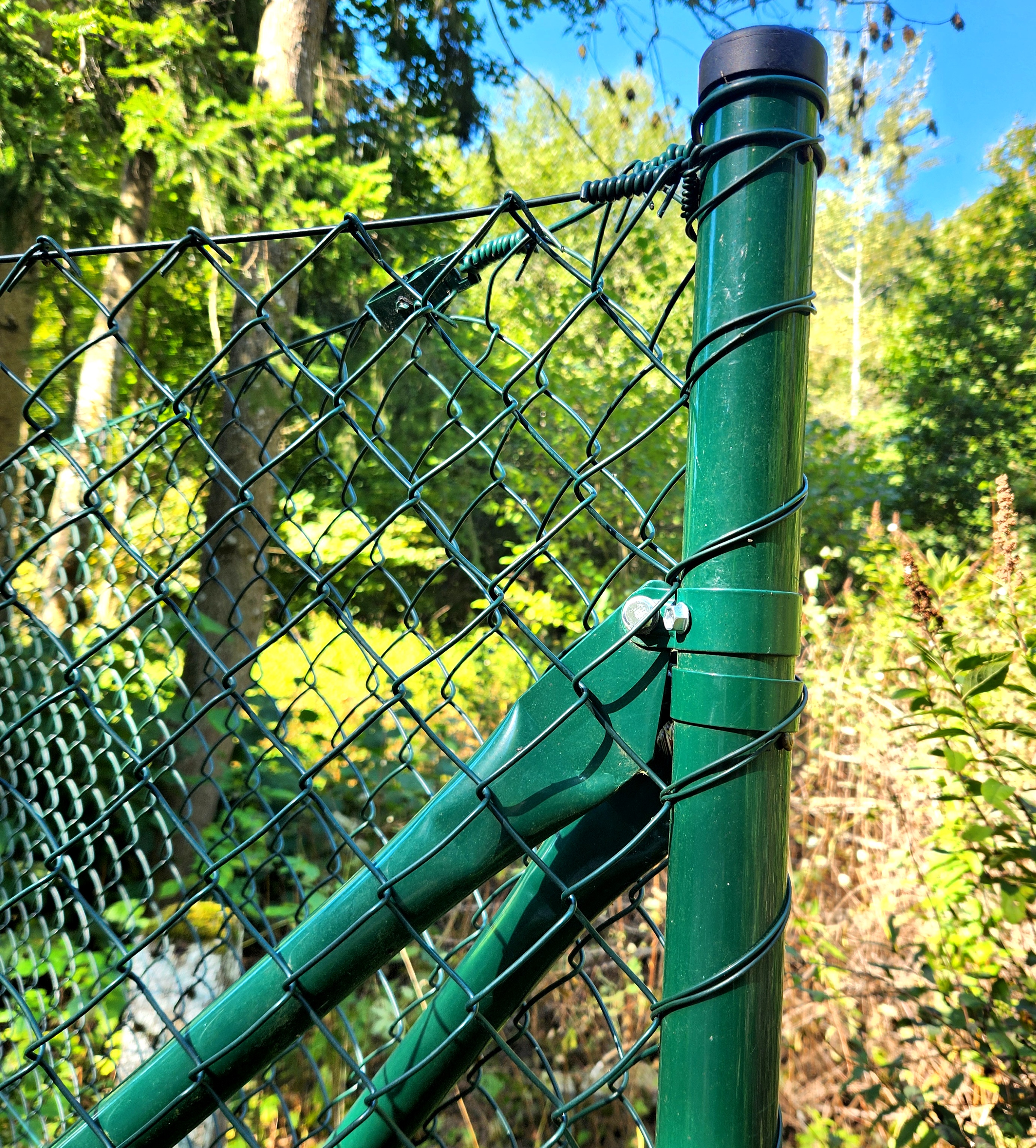 Strebe 200 cm lang, aus Stahlrohr dia. 38 mm und Wandstärke 1,5 mm. Farbe tannengrün (RAL 6005). Feuerverzinkt (außen und innen) und kunststoffbeschichtet - sorgt für Langlebigkeit und Qualitätsbeständigkeit. Bei der Konstruktion des Zauns ist die Strebe ein sehr wichtiges Element und es ist notwendig, eine am Anfang des Zauns zu verwenden, 2 Stück (fortlaufend zum gemeinsamen Pfosten) für alle ca. 30 m der Länge des Zauns, 2 Stück für jede Ecke (in Richtung der Zaunlinie) und eines am Ende des Zauns. Vergessen Sie auch nicht, jedes Tor und jedes Tor von beiden Seiten abzustützen.