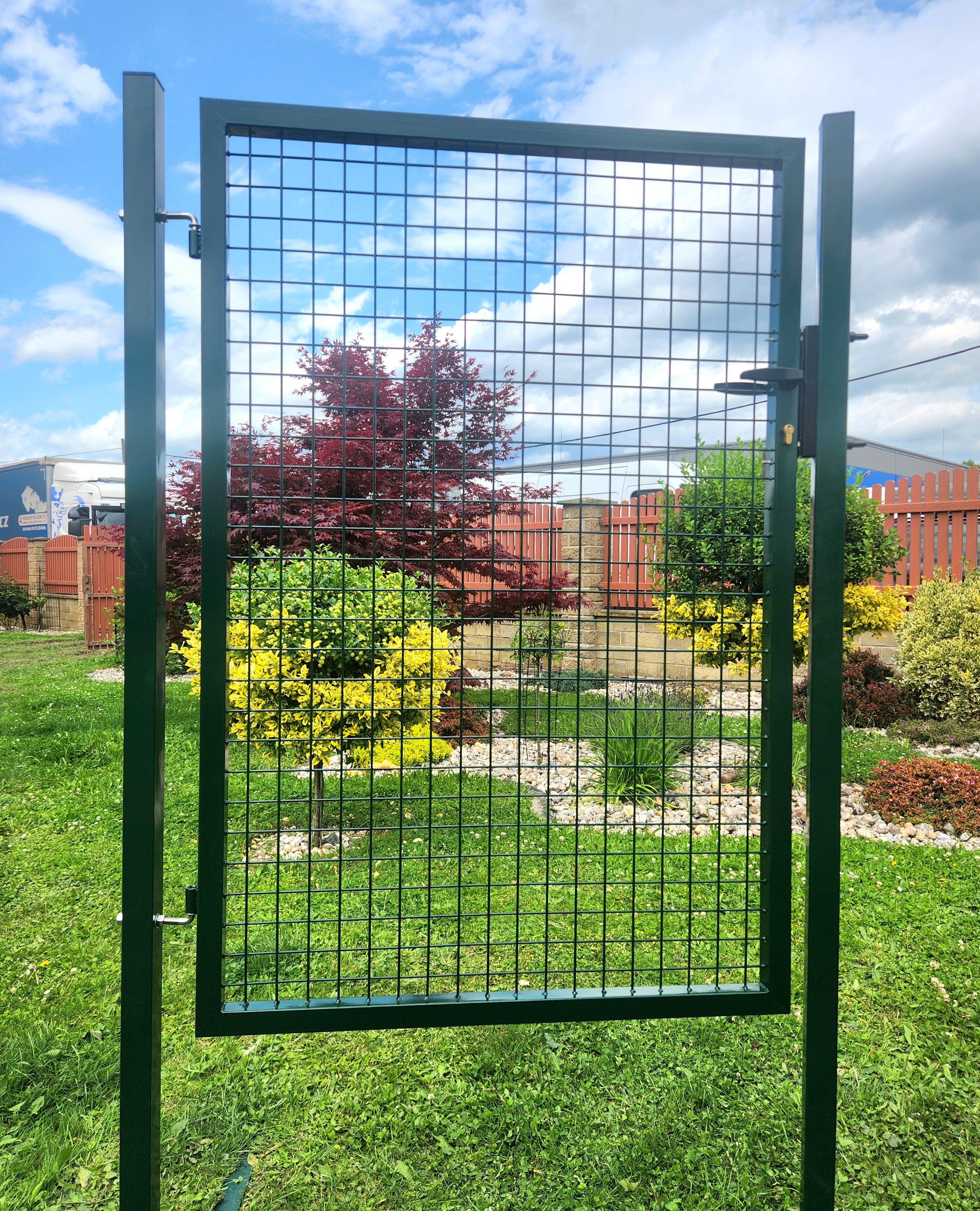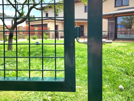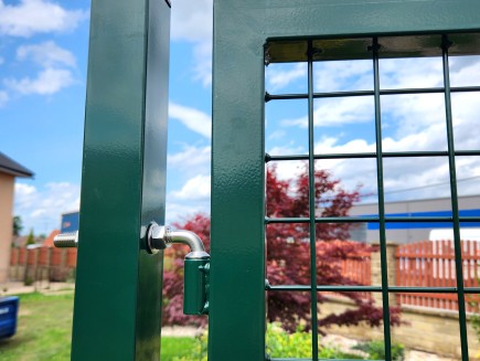 Modernes Stahltor mit quadratischen Pfosten . Die Flügelhöhe beträgt 180 cm und die Flügelbreite 100 cm. Grün (Sie können über die Schaltfläche "Ändern" eine andere Farbe oder 3D- und 2D-Paneel-Stränge auswählen) , kunststoffbeschichtet, mit Griffverschluss . Die Breite des gesamten Tores inkl. Pfosten beträgt ca. 117 cm. Dieses Tor eignet sich besonders zum Bau von Zäunen in Kombination mit LARIO- , LARIOEco- , 2D- , Executive plus- , Executive Plus anthrazit- und Top 100- Paneelen. Dank seiner Robustheit und seines modernen Aussehens eignet es sich auch für Stadtmobiliar, Spielplätze, Parks usw.