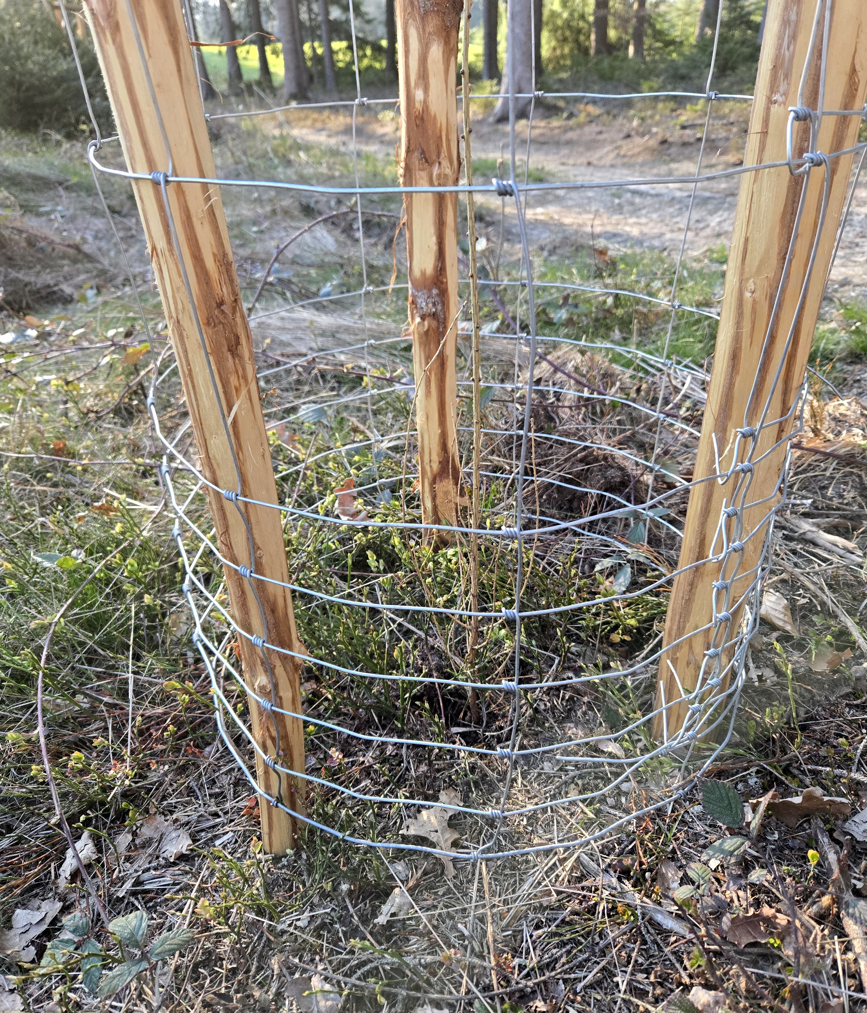 Verdickung der horizontalen Drähte von unten: 3 x 5 cm, + 4 x 10 cm, + 2 x 12 cm, + 16 cm, + 17 cm, + 21 cm, + 23 cm.