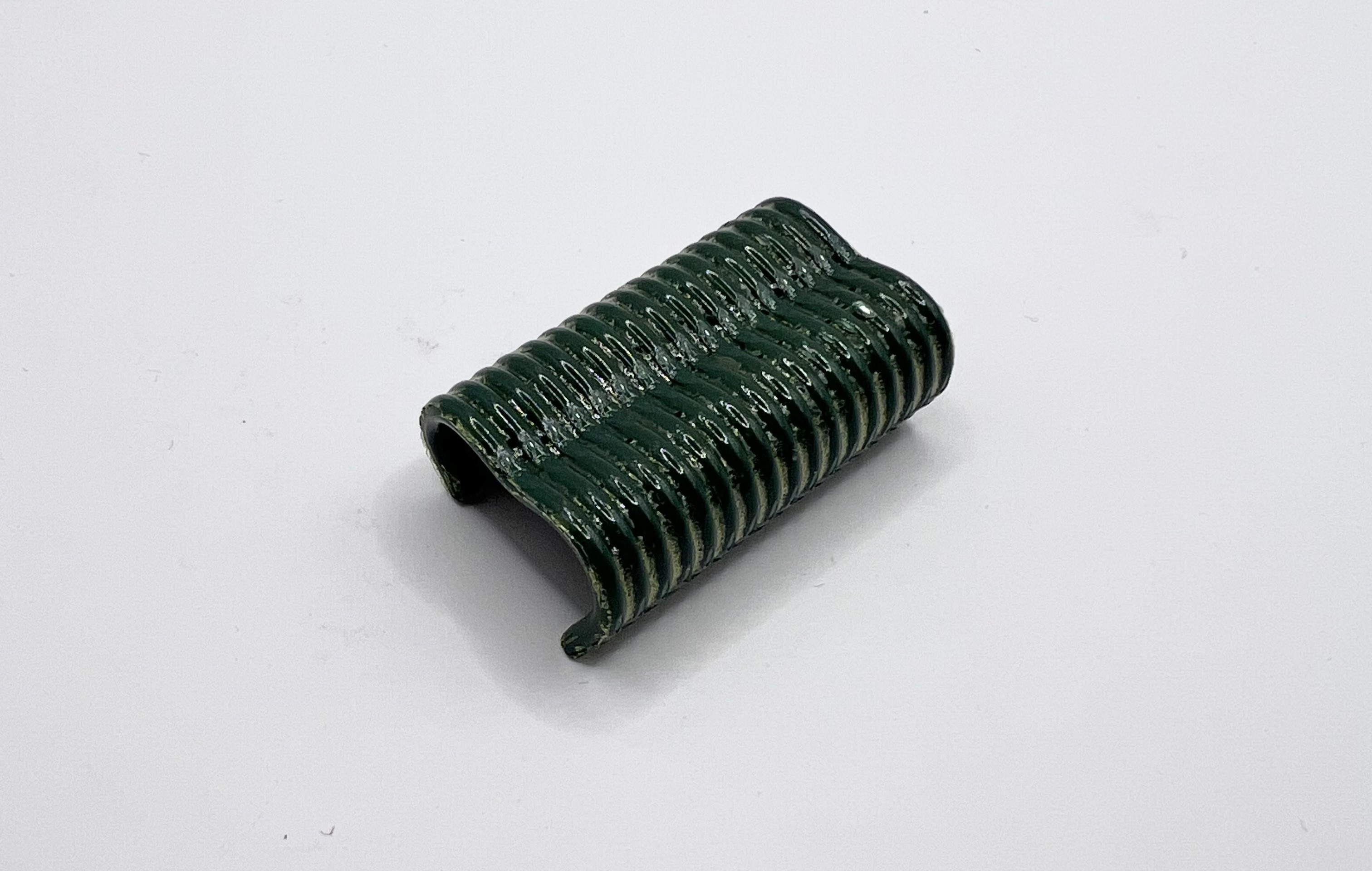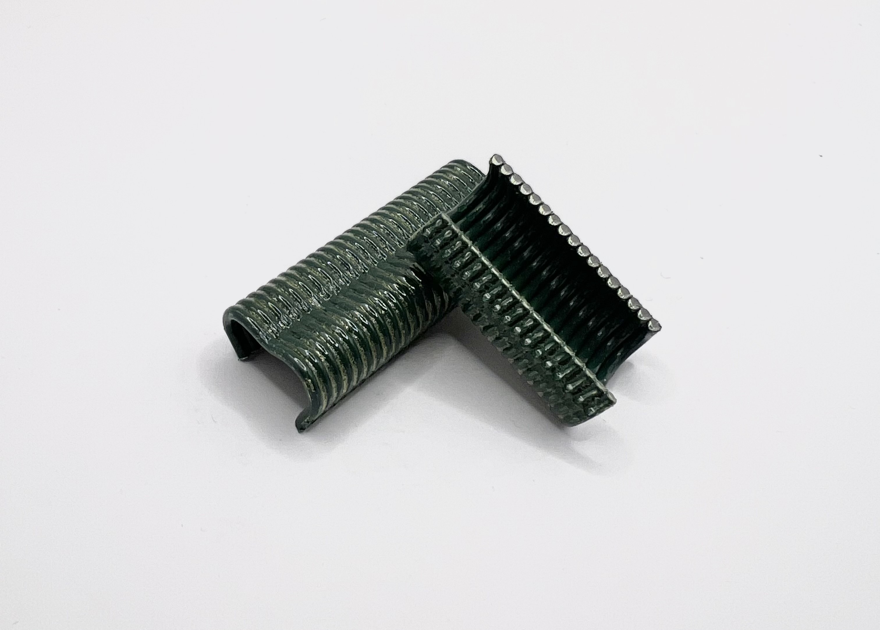 The clips are made of galvanized wire with plastic coating in RAL 6005 (fir green).