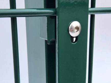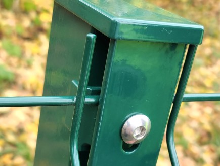 From the front side of the post, M8 internal threaded eyes are pressed into the body of the post and plastic spacers are attached for attaching a 2D or 3D panel (both types of panels can be installed universally). The entire front side of the column is elegantly covered with a 5mm wall strip that overlaps the joint of the panels.