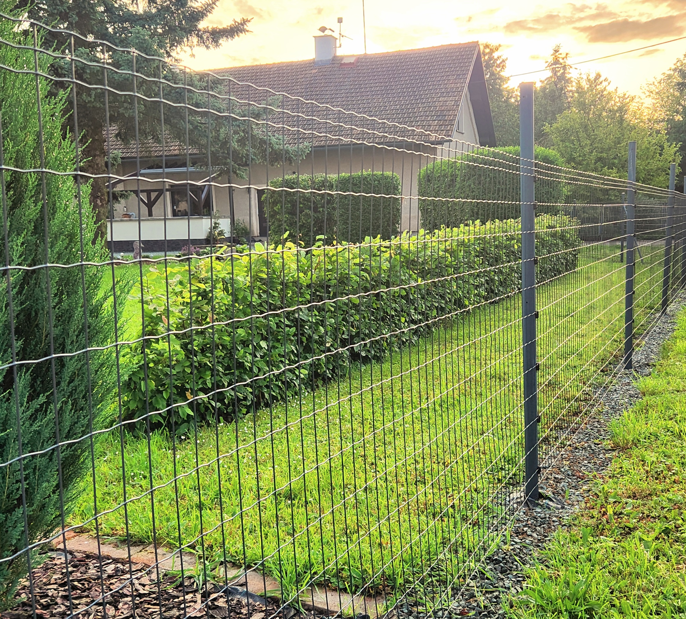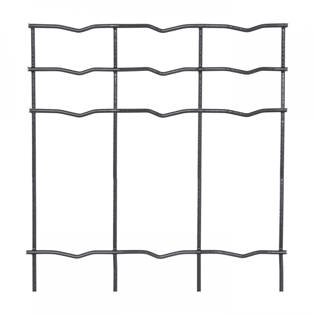 The height of the mesh is 180 cm, mesh size 50x100 mm, and strong solid wire 2.4 mm, color anthracite, black RAL 7016. To achieve greater strength, 2 horizontal wires are inserted in the upper and lower parts of this mesh (creating mesh sizes of 50x50 cm).
