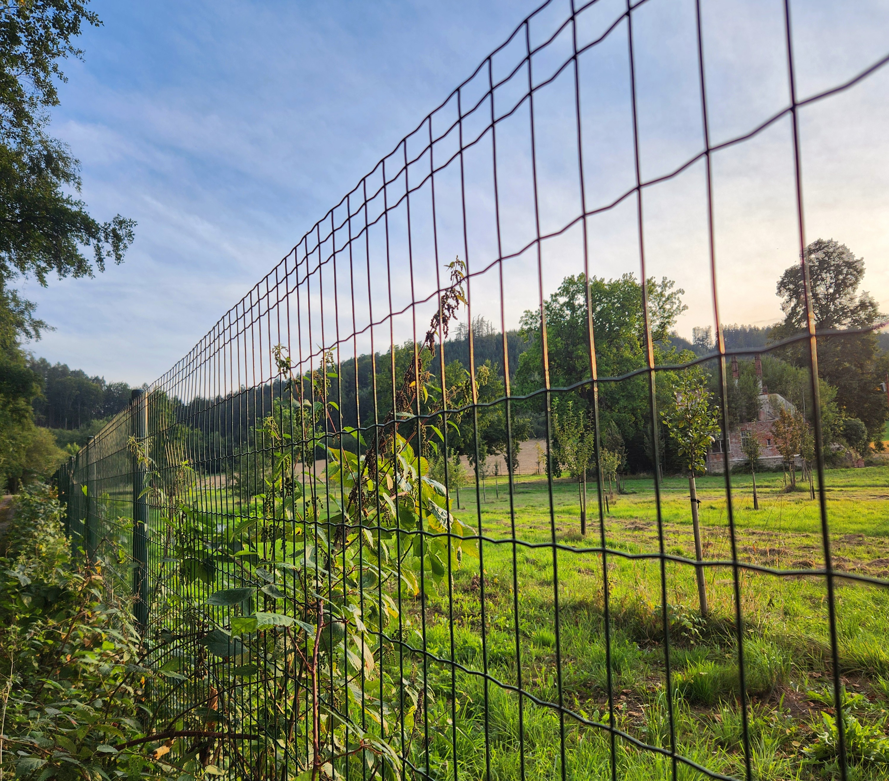 To build a fence from this mesh, we recommend using plastic-coated T-line posts and plastic-coated binding wire can be used to attach the mesh to these posts. The individual packages can be connected by "overlapping" the old and new rolls by 2-3 meshes and tying the joints with wire or by connecting the joints with connecting pliers . No tension wires are used for this mesh. The mesh stretches perfectly on flat surfaces thanks to the slightly wavy horizontal wires, which act like a spring and guarantee optimal ductility. Any uneven terrain is best solved by leveling the terrain, or experienced installers can change the direction of the fence and curl this mesh with crimping pliers . The exact assembly procedure can be found in the documents / assembly instructions section.