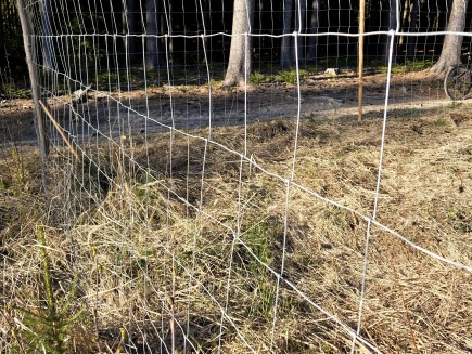 Height 160 cm, 14 rows of horizontal wires (from 5 cm spacing). The distance between the vertical wires is 15 cm. The mesh is made of 2 mm galvanized wire, the upper and lower horizontal wire even 2.8 mm.