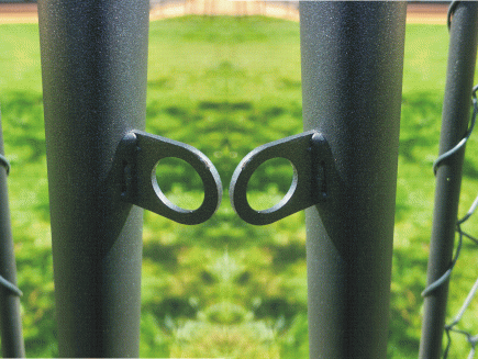 The left gate leaf, when viewed from the street , is secured against unintentional opening by a plug ("slide", locking pin), which ensures arbitrary movement of the leaf, for example, in the wind. Welded eyes are used to lock the leaves together, into which the padlock shackle is threaded and the gate is locked "from the street side". The opening angle of the gate leaves is approx. 130°. Our tip! If you intend to lock the gate from the inside, purchase 2 eyelets for the gate , which you screw onto the frame of the leaves from the inside and you can lock the gate from the property.