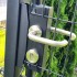 * Gate accessories: upper and lower adjustable hinges that allow you to easily set the exact position of the gate leaf, a gate stop that determines whether the gate will open into the property or the street, all hardware , a handle, and a cylindrical tapered lock inserted into the gate leaf frame. The gate is universal for right- and left-hand use , using the stop you can set the opening direction towards or away from you .