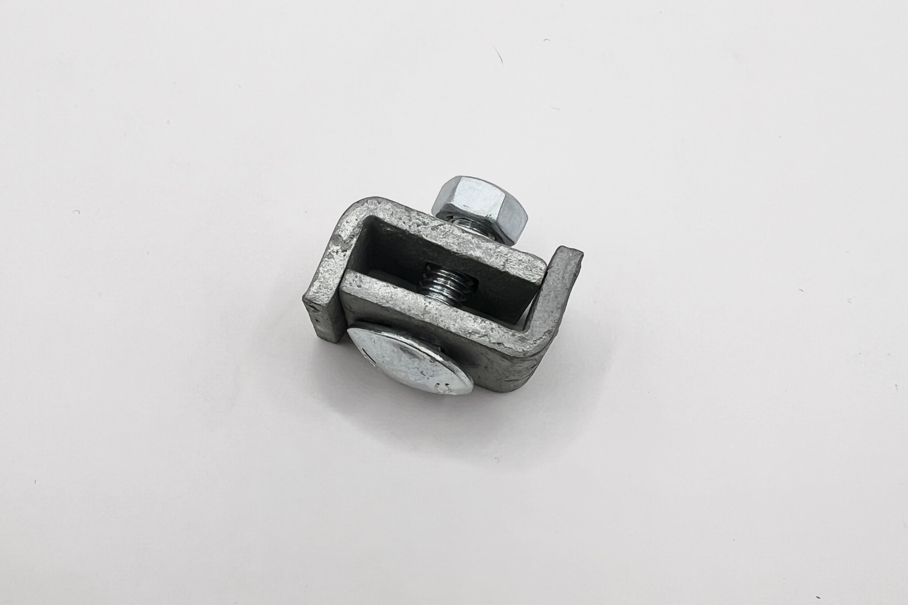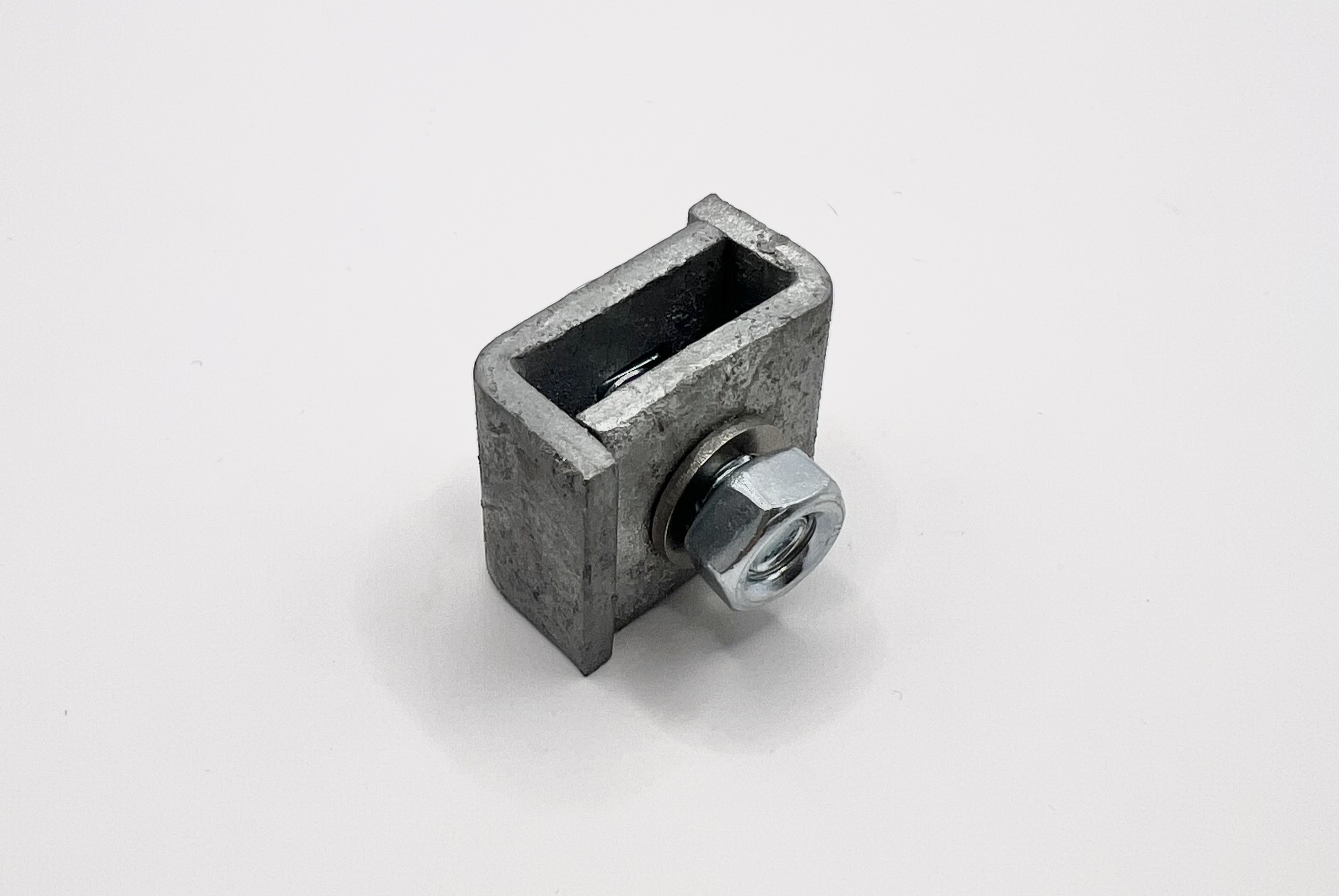 Made of sheet metal 3 mm thick, size 24 x 20 mm, hot-dip galvanized. Supplied incl. neck screw and M6 nut.