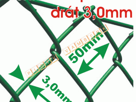 The height of the mesh is 125 cm , it is without entangled tension wire (read about the advantages of this design in the detailed product description or in the assembly instructions ), wire incl. the plastic coating has a diameter of 3.0 mm. The steel core coated with hot-dip zinc has a diameter of 2.0 mm, which makes this mesh extremely strong . Subsequently, this wire is coated with a thick layer of extruded plastic , which guarantees the best adhesion for a long service life. The size of the mesh is 50 mm, the color of the mesh is green . The package is 25 m , the sale is for the whole package.