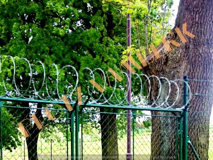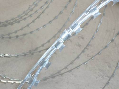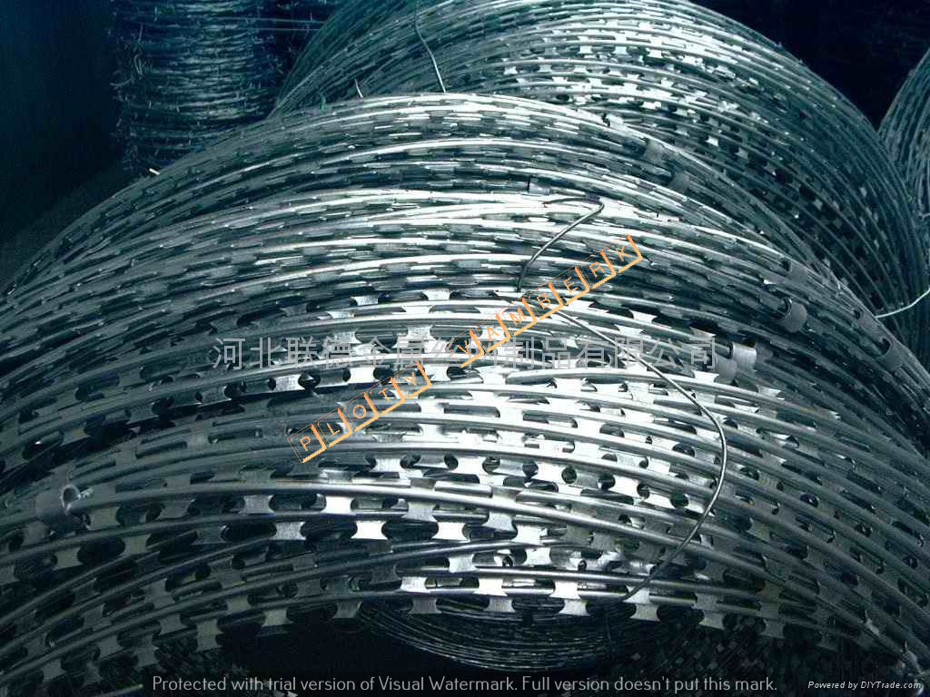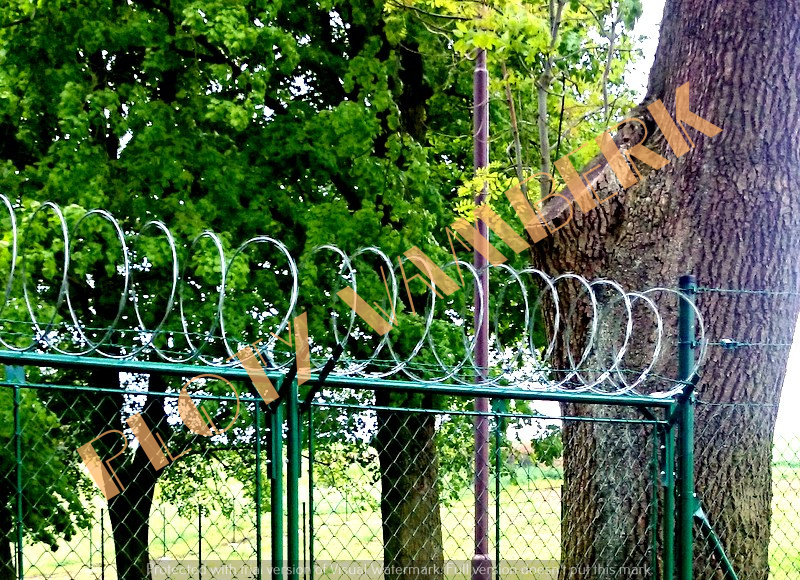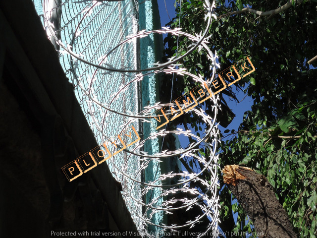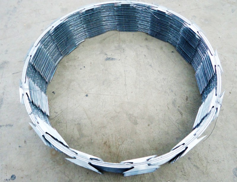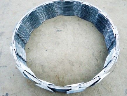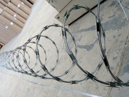 used for the absolute security of objects, especially prisons, airports, hospitals, factories, etc... The package expands to approx. 8 - 12bm, creating an endless spiral with a diameter of 45cm, which is placed either above the mesh or behind the mesh in the object. The amount of sharpened metal blades guarantees absolute impassability.