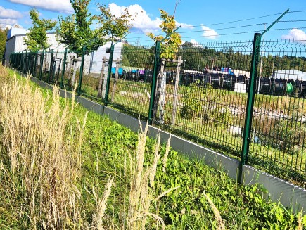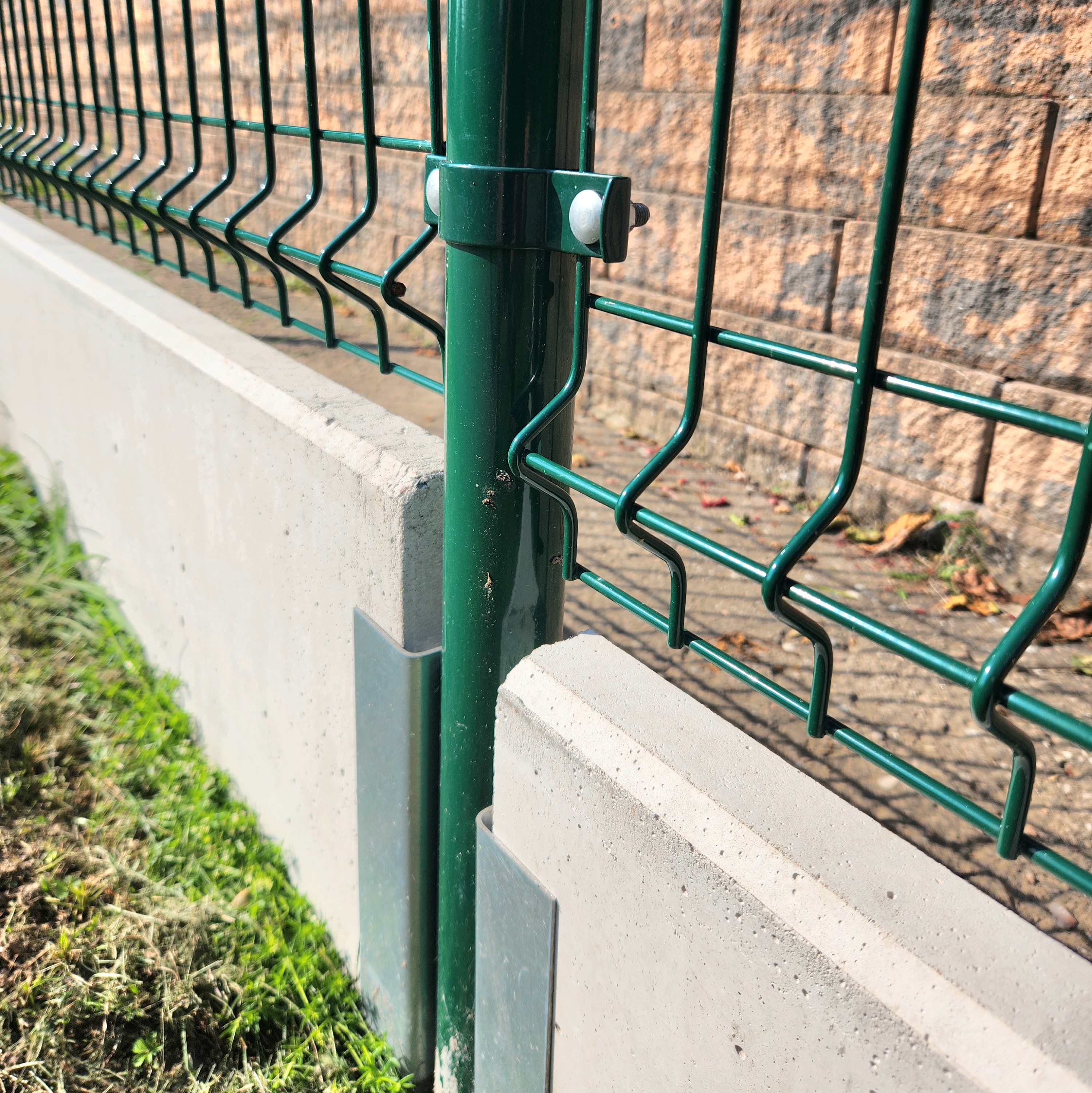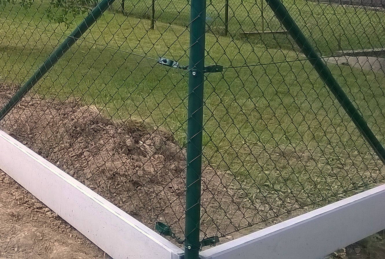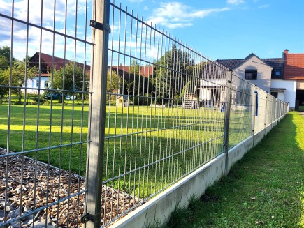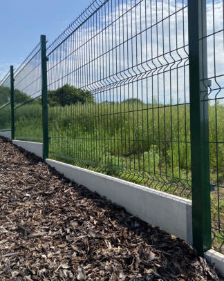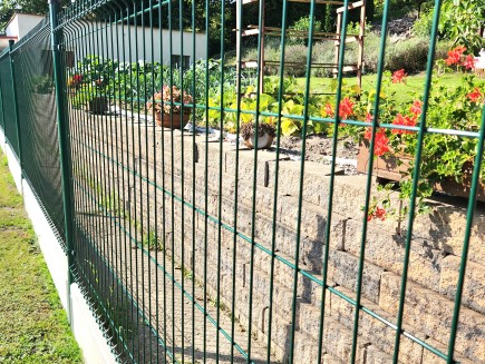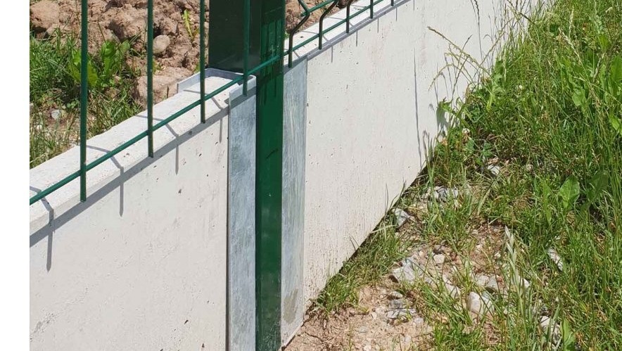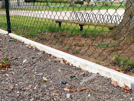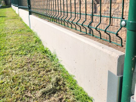 A concrete edging board is the only functional option (unlike plastic board substitutes, etc.) to prevent grass from growing through the fence, to strengthen and thicken the entire fence, and to prevent animals from digging under it. Using a concrete board will increase the utility value of the entire fence and ensure easy mowing and excellent maintenance of the greenery around the fence.