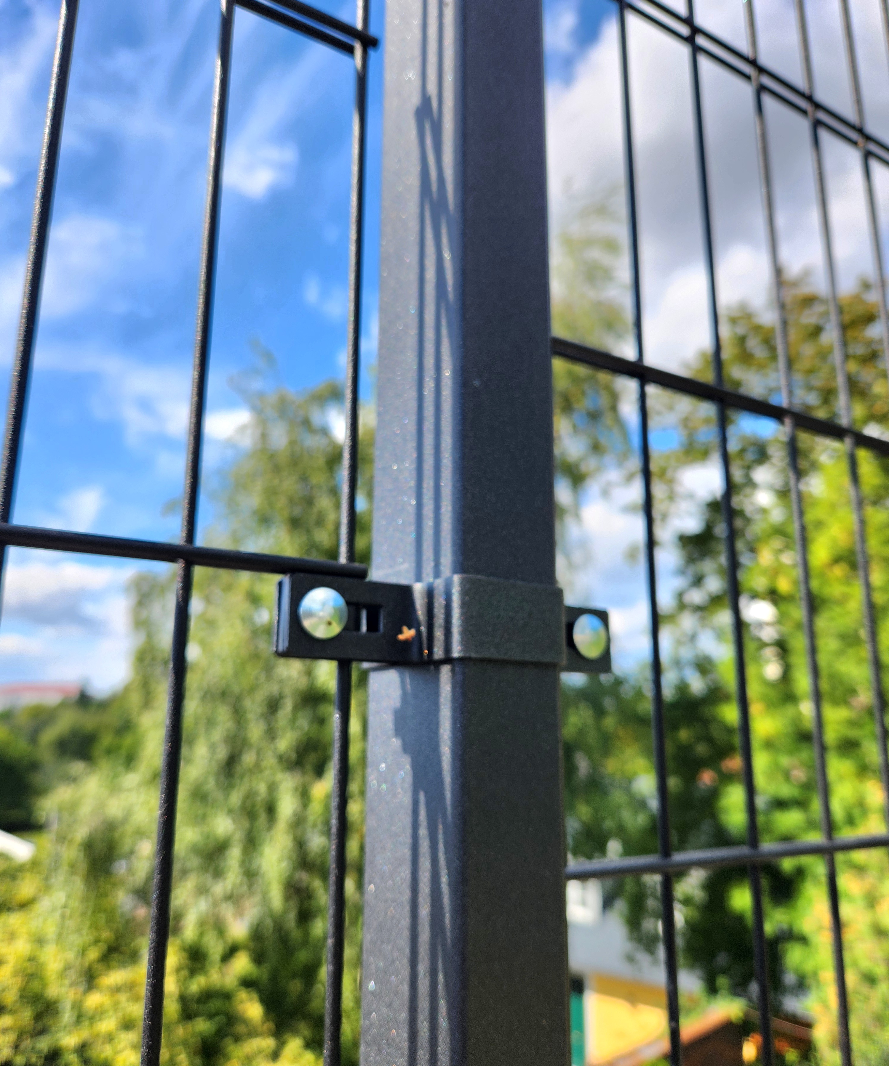 Oboustranná objímka je opatřena žárovým zinkem s následným poplastováním v moderní barvě antracit. Průběžná objímka je speciálně vyrobena pro připevnění panelů Lario na sloupky...