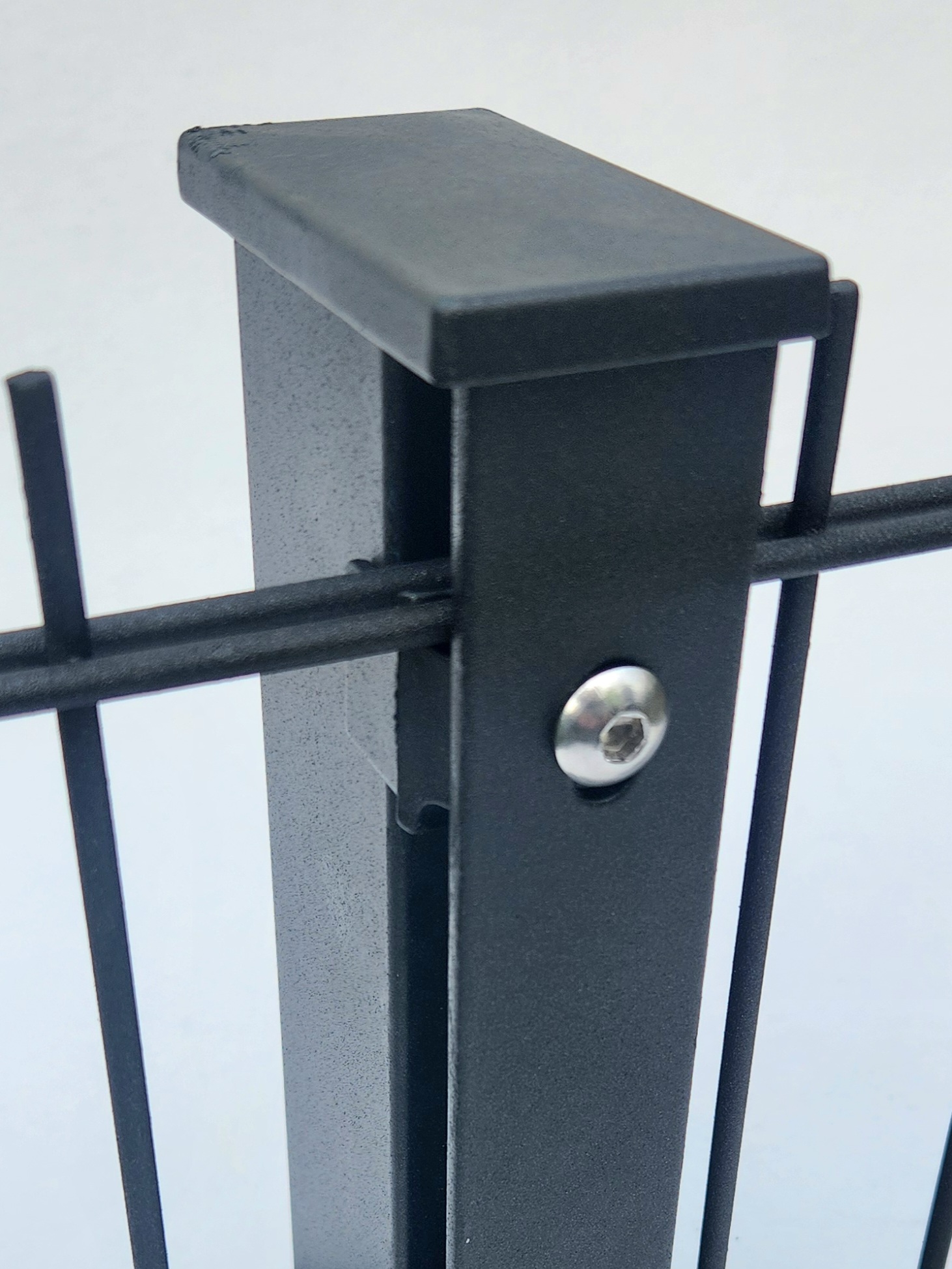Oboustranná objímka je opatřena žárovým zinkem s následným poplastováním v moderní barvě antracit. Průběžná objímka je speciálně vyrobena pro připevnění panelů Lario na sloupky...
