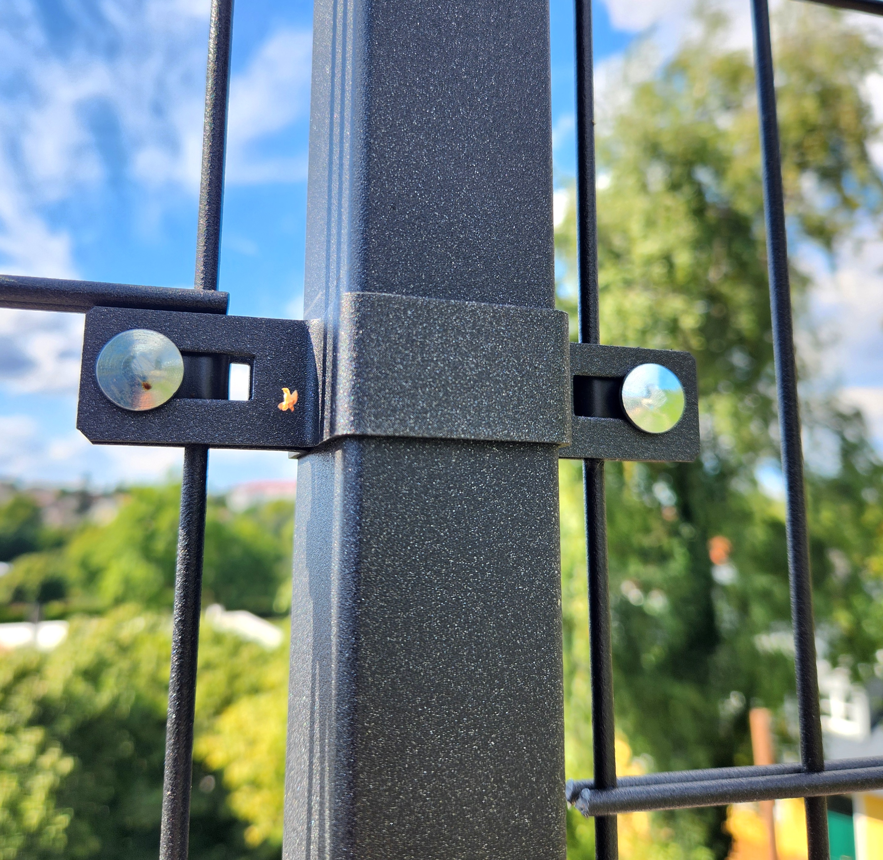 Oboustranná objímka je opatřena žárovým zinkem s následným poplastováním v moderní barvě antracit. Průběžná objímka je speciálně vyrobena pro připevnění panelů Lario na sloupky...
