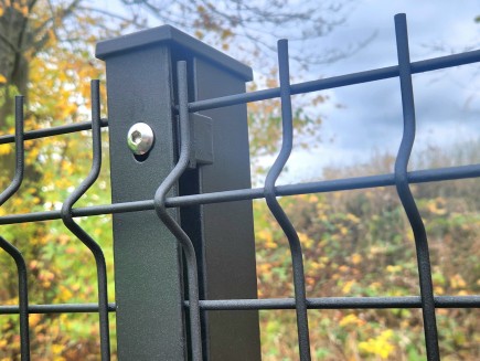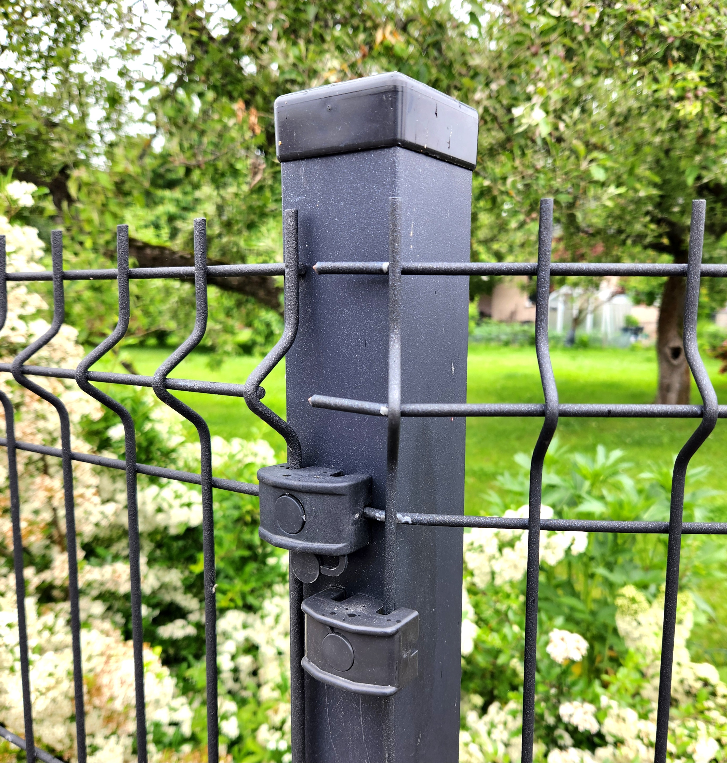 Oboustranná objímka je opatřena žárovým zinkem s následným poplastováním v moderní barvě antracit. Průběžná objímka je speciálně vyrobena pro připevnění panelů Lario na sloupky...
