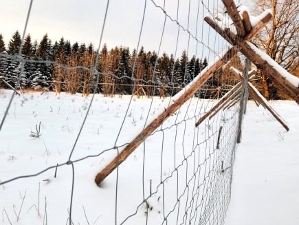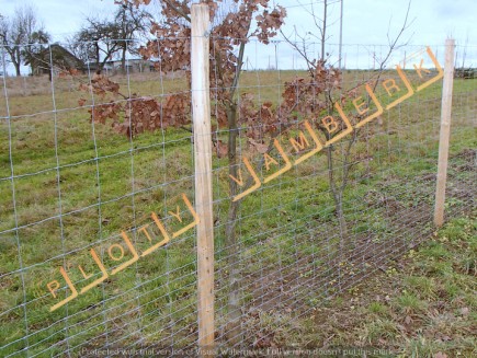 Zahuštění vodorovných drátu od spodu: 12 x 5 cm,+ 12 cm,+ 13 cm,+ 15 cm, + 18 cm,+ 20 cm,+ 23 cm.